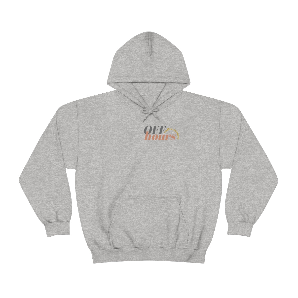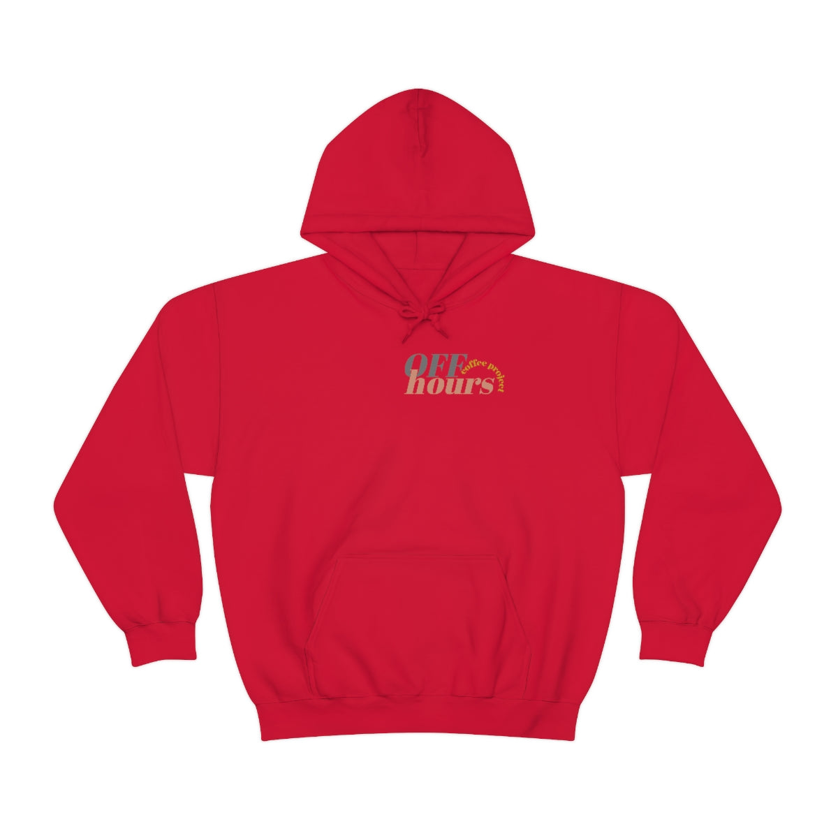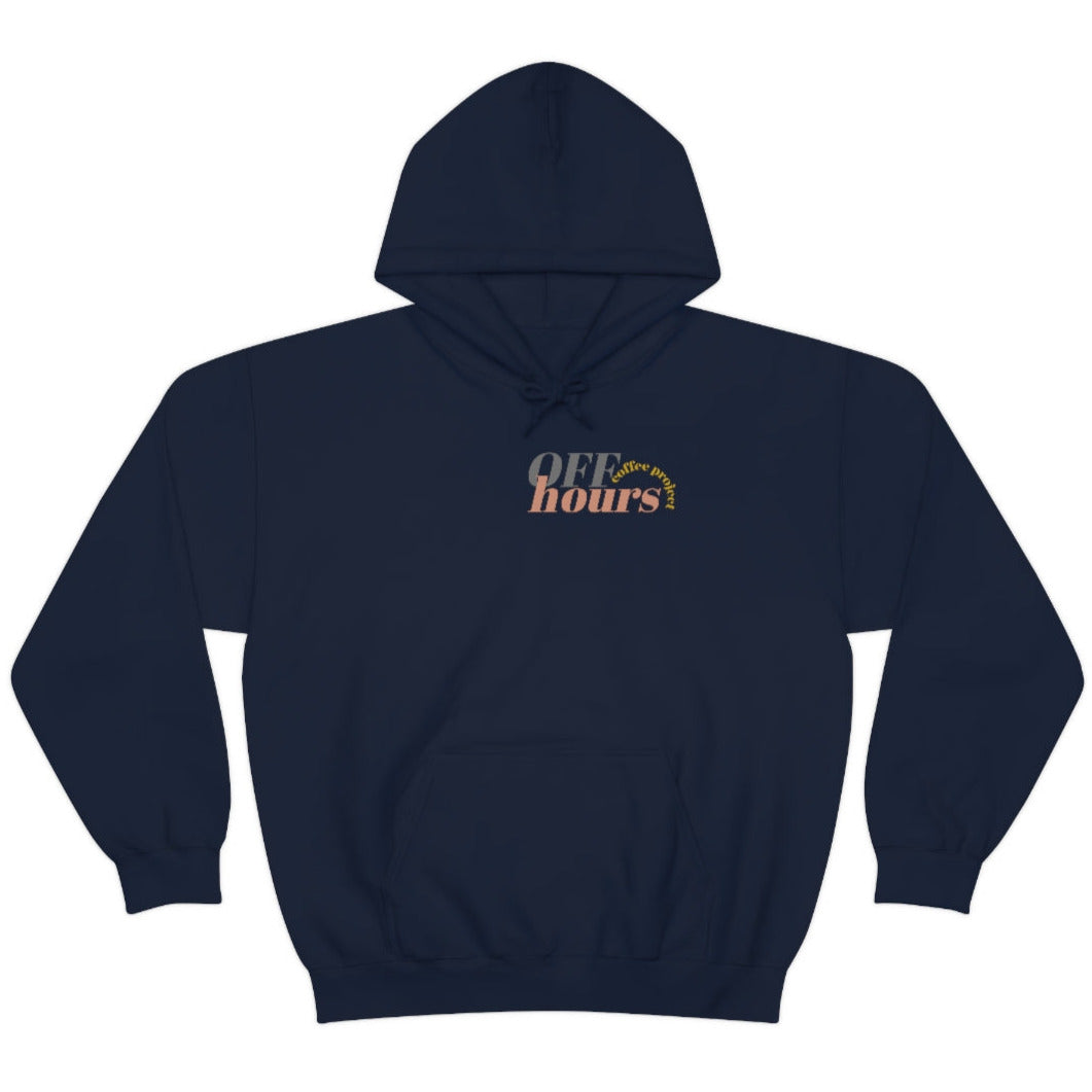 This custom Off Hours Coffee branded unisex heavy blend hooded sweatshirt is relaxation itself. Made with a thick blend of cotton and polyester, it feels plush, soft and warm, a perfect choice for any cold day. In the front, the spacious kangaroo pocket adds daily practicality while the hood's drawstring is the same color as the base sweater for extra style points.