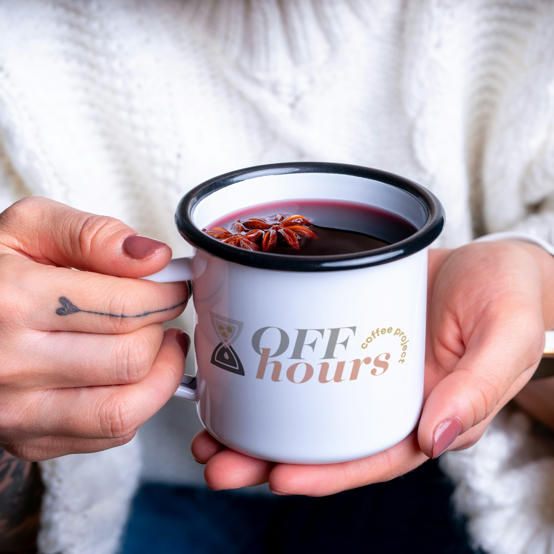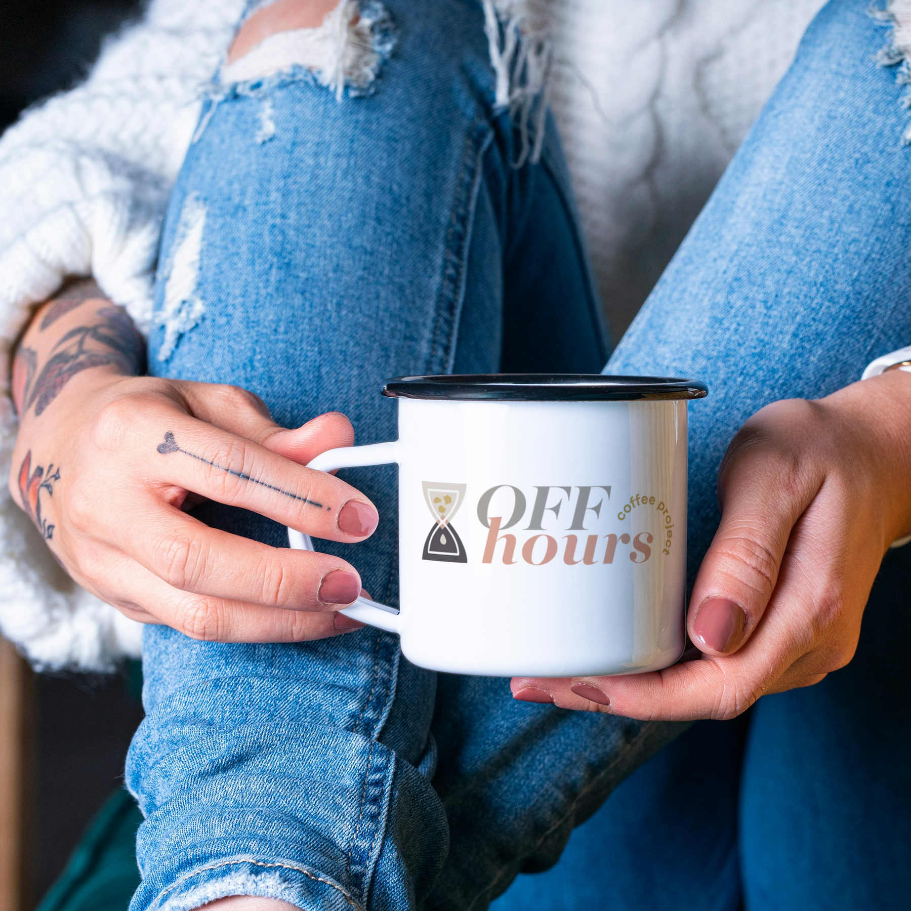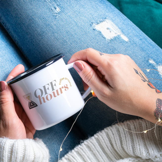 Enamel Camp Cup Off Hours Coffee Branded